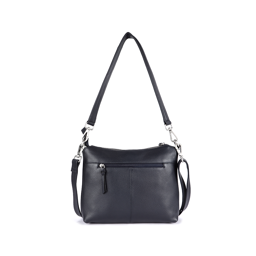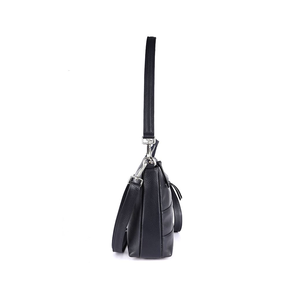 A functional leather bag with dual detachable straps, a structured silhouette and organized exterior pockets. Designed for everyday comfort and hands-free ease.